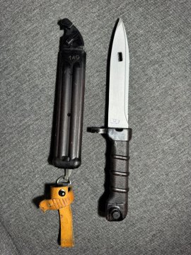 Prodám bodák na AK74 v barvě švestka, plum. Pěkný stav, sčíslovaný. Ruská produkce, ižmaš. Poslat zásilkovnou není problém.