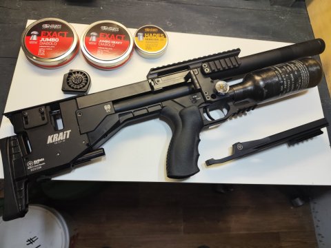 Ráže 5,5 mm.Vzduchovka koupena 03/24.Vystříleno 1000 ks JSB Jumbo Exact.Jeden zasobnik na 16ks, plnící PIN Airmaks,kufr. Přesná, spolehlivá. Přidám prodloužený Arca rail. 500 ks Jumbo Exact Heavy 500 ks Jumbo Exact 150 Hades Monster