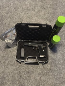 Prodám plynovou airsoftovou pistoli, stav jako nová. (PC 4,000) Přidám plyn, kufřík, plničku zásobníku, kuličky a ochranné airsoftové brýle. Zbraň plně funkční, zásobník je potřeba přetěsnit (lehce uchází plyn). Při rychlém jednání sleva Osobní předání / poslání po domluvě.
