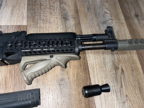 Dobrý den, prodám své Ak 104, zbraň je ve velmi dobrém stavu. Na zbrani je přidané předpažbí Zenit a na něm grip, na závitu hlavně je flash hider DTK1. Vnitřek zbraně je v základu, tedy žádný upgrade. Ke zbrani bych rád přidal 4 plechové zásobníky a 4 waffle zásobníky. Pro případný zájem pište prosím sms. Při rychlém jednání možná sleva.