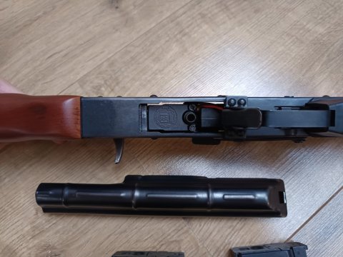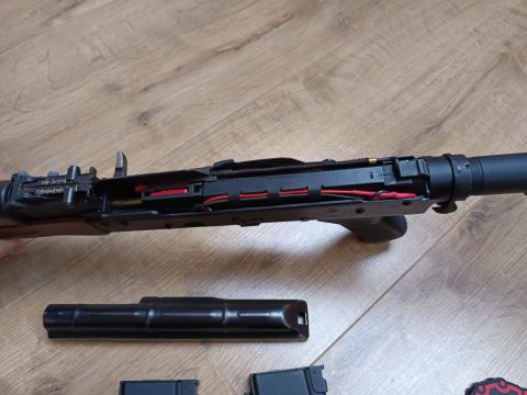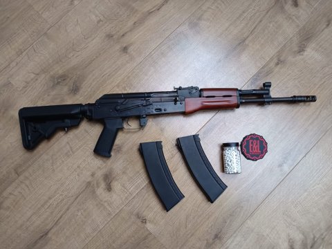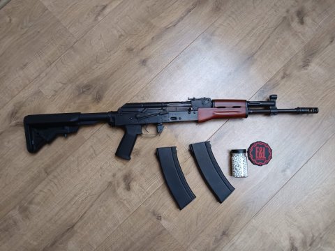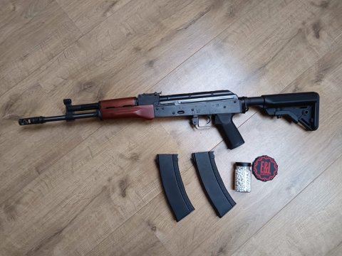 Prodám AK PMC od E&L gen.2 . Už od výrobce lepší díly -motor EL170 -vetší ložiska -lepší vzduchotechniku. -mosfet Zbraň je plně funkční a v pořádku. Materiál zbraně Ocel/ Dřevo . Velkou výhodou je výsuvná pažba . Ke zbrani je 2x zásobník a originální krabice.