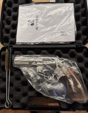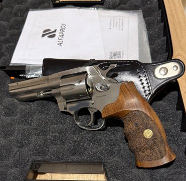 Prodám revolver ALFA 9941 9mm flobert C1 v nerezovém provedení se dřevěnými střenkami a stavitelnými mířidly. Revolver na zakázku vyrobený, je zcela nový, nikdy nevystřelená ani rána. Sbírkový stav. Záruka do 12/2027.