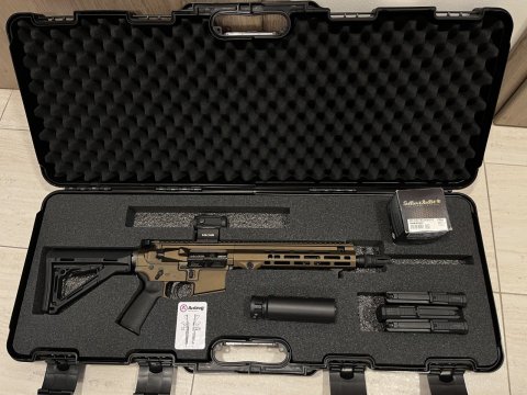 Prodám novou pušku Antreg 300AAC Blackout, LW příplatková hlaveň 10.5”, barva Midnight bronze, pístovka. Bylo vyrobeno jen pár kusů v této délce, na prodej běžně nejsou. Puška nastřílela 20ks subsonic - vše jak má být, možno vyzkoušet na střelnici. K pušce mohu nabídnout HE403B-GR, tlumič a flash Ase Utra Dual762 Gen 2 short. K pušce 3x Pmag zásobník na 20 ran, grip a 80ks S&B sub, kufr, původní úsťovou brzdu. Cena je za KOMPLET, možná výměna, možný prodej bez komponentů. Původní cena kolem 98k