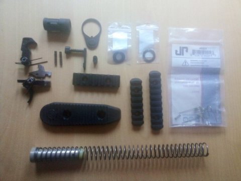 Prodám soubor dílů sundané z úplně nové zbraně, nikdy nevystřelena ani rána!! Vše Mil-Spec. Kompletní spoušť s leštěnými styčnými plochami, odlehčené pružiny spoustě od JP ENTERPRISES + originální pružiny, vypouštění zásobníku, Flash Hider A1 1/2x28, nové podložky pod úsťovky od Ascalon Arms rozměr viz.foto, back plate, raily 2x Magpul 1x UTG, buffer + pružina, botka pažby Magpul. PRODEJ NEJLÉPE KOMPLET!!!