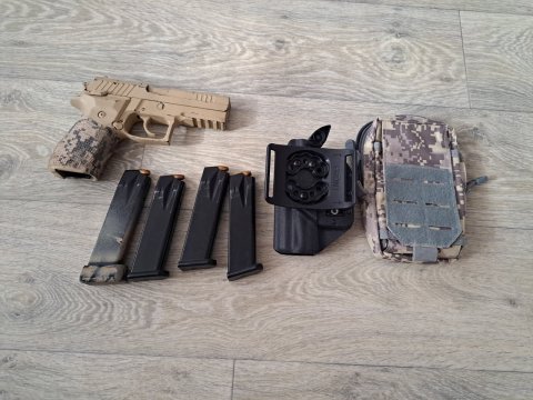 Prodám arex zero 1 standard se čtyřmi zásobníky a příslušenstvím, tři s kapacitou 18,jeden prodloužený na 20 ran,zbraň je velmi spolehlivá