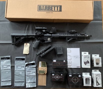 Prodám zánovní Barrett, zbraň má kolimátor, magnifire a combo Light/Laser od firmy Sightmark Texas, magpul předpažbí, ke zbrani ještě přidám tři zásobníky od magpulu plus sponu která drží dva pohromadě.Více info po telefonu popřípadě více fotek - zbraň má vystřeleno okolo 100 ran továrního střeliva, zbraň je perfektní, vyčištěná a připravená pro nového majitele (Cena je pevná)
