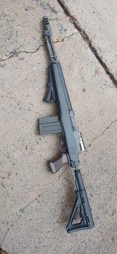 Prodám Berettu BM59 Alpine, pažba předělaná na AR15 buffer s pažbou Magpul CTR, na zbrani je vyrobená montáž pro kolimátor/optiku (drží výborně), sada pružin Wolfe USA, kompenzátor MDT (velmi účinný), spodní rail na rukojeť/svítilnu/bipod. Ke zbrani vše co je na foto, původní díly, druhý zásobník, zbytek munice, druhý kratší kompenzátor, obal, ručka FAB... střílí pěkně, ale zahálí v trezoru. Kontakt prosím na e-mail.