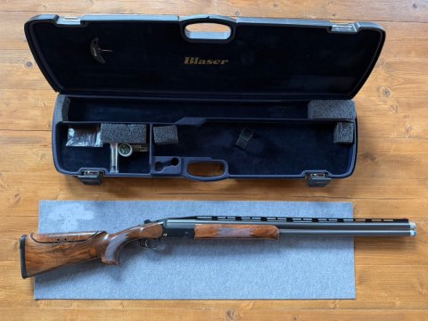 Blaser F3 Vantage - v opravdu vynikajícím stavu - se střední šínou a 76cm dlouhými hlavněmi, zbraň má stavitelnou lícnici a nádherné dřevo vyšší třídy. Ke zbrani jsou 3ks venkovních choků 1/2, 3/4 a 1/4. Orginál kufr Blaser. Více info po telefonu