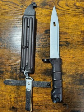 Prodám bayonet na pušku AK74, perfektní stav, plum - švestková barva. Originál rusko / sssr.