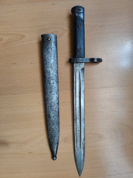 Prodám bodák Maďarský Mannlicher M95 s muškou značeny výrobcem a přejímací značkou to samé značení je ojedinělé i na pochvě výrobce+Rakouská orlice. Nebroušený ! Foto zkresluje je pěkný. Cena 2800kč Osobně Karviná nebo Zasilkovna