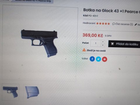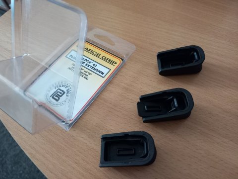 Prodám 3 botky na glock 43, co navyšuje kapacitu o 1 náboj, tedy na 7. Jedná se o botka Pierce grip + 1. Jedná stojí na glock shopu 369 Kč, já nechám 3 za 600. Praha 4, osobně.