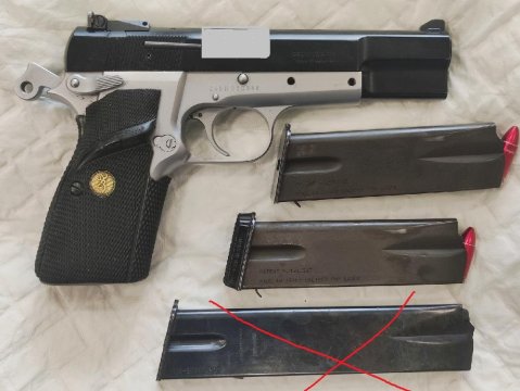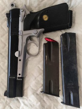 Prodám FN HP 35 Browning S.A. Made in Belgium v originálnim kufru. Rám pistole v nerezovém provedení. Výškově i stranově stavitelná mířidla. Součástí nabídky je vše, co je na fotkách (2x zásobník - 13 ran, 1x zásobník - 20 ran ). Je možné vyzkoušet na střelnici. ZP a NP samozřejmost.