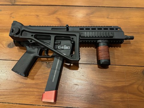 Prodám výše zmíněný B&T APC9 G s nástřelem necelých 2000 továrních nábojů.Oproti standartu je zbraň osazena pistolovou ručkou Magpul MOE a přední ručkou Hera Arms s opletem z kůže (nepoužitá). Dále je ke zbrani velkokapacitní zásobník s duralovou prodlouženou botkou. Celkově je APC ve velice pěkném stavu. Rynholec okr.Rakovník ZP/NP samozřejmostí.