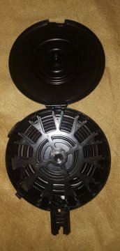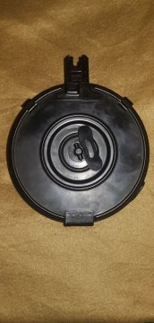 Prodám bubnový zásobník do pušek AK47 a AKM. Kapacita 75 nábojů 7,62x39. Je nový, jen pro kontrolu vybalený z igelitu. Jedná se o desítky let osvědčenou vojenskou výrobu čínského státní gigantu Norinco. Díky jiné konstrukci mechanismu podávání jsou spolehlivější než ruské zahnuté bubny na RPK se šnekovým podavačem.