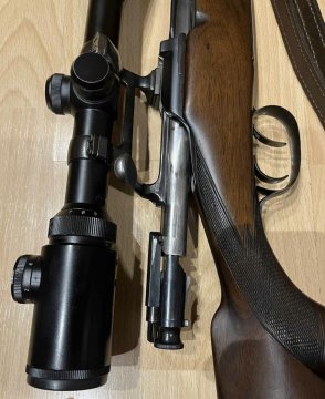 Celopažběná kulovnice STEYER Manlicher 7x57. NOVÁ hlaveň, celková renovace. Puškohled LUGER 3-9x40, červený bod, klapková montáž. Hezká, čistá. Cena 29 tisíc.