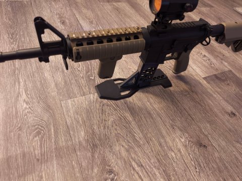 Nabízím nový čistící a servisní stojan především na platformu AR, puška se nasadí místo zásobníku a vše drží v rovině. Na fotografii je pro představu airsoft.
