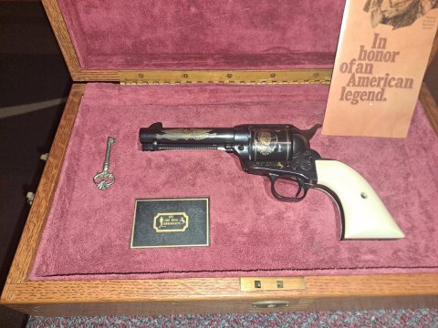 Nabízím k prodeji Colt 1873- edice John Wayne, ráže 45 Colt, hlaveň 4,25ˇˇ. Dodáváno v kazetě s klíčem a pamětní plaketou. Rukojeti ze slonové kosti. Zbraň se nachází v top stavu. Nutné NP + ZP.