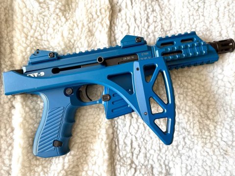 Prodám CSV-9, verze 1, 9 mm Browning court, modrá barva. Nestřílená. Výborné střelecké vlastnosti. V Browningu téměř nulový zpětný ráz. Individuální záležitost. Na náš trh se nedodávala. Ke zbrani je 1x zásobník na 12 nábojů.