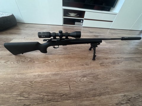 Prodám CZ 457 Synthetic ráže LR.Zbraň je opatřena orig.puškohledem a kovovým tlumičem.Tip viz.foto.Puška je zakoupená v 06/25.Vystřeleno 5nábojů.Originální dokumentace.Cena je za komplet včetne tluniče.Vše nové.Zbraň nevyužita. Přidám náboje.