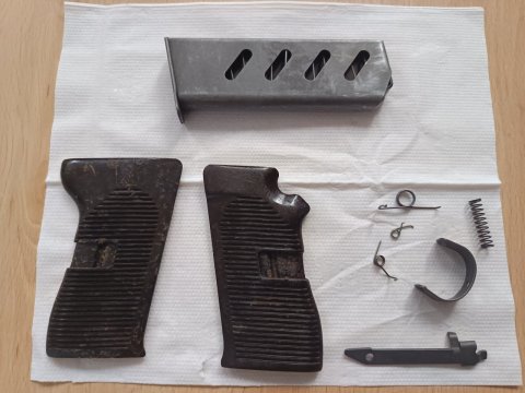Prodám díly pro pistoli CZ 52 - 7,62x25 Tokarev. Díly nové - nepoužité: spojka střenky, pružina spojky závěru, záchyt závěru, pružina záchytu závěru, pružina spoustě, pružina záchytu kohoutku. Díly použité: střenky - nepopraskané, zásobník na 8 ran. Pouze vše dohromady. Zásilkovna - Balíkovna + 90 Kč. Kontakt prosím nejlépe SMS, nebo e-mail. Ozvu se zpět.