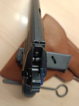 Pistole je ve velmi pěkném stavu. Rok výroby 1954. Celkové opotřebení všech součástí je minimální, téměř neznatelné. Součástí prodeje je zbraň, jeden zásobník, vytěrák a kožené originální dobové pouzdro ve velmi dobrém stavu. Mnou nestřílená. Původní záměr byl pouze rozšíření sbírky. Nyní ruším. ZP a NP samozřejmostí. V případě zájmu mohu nabídnout 200 ks střeliva po 8 Kč/ks. Osobní odběr Kladno. První kontakt prosím na email, ozvu se zpět.