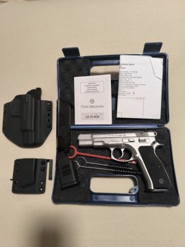 Prodám CZ 75 B Luger 9mm stainlees rok nákupu 8/2008, jako nová, vystřeleno 58 nábojů. Ke zbraní RH holster pro praváka venkovní a pouzdro zásobníku. Ke zbrani vše, včetně záručního listu a zkoušky. Přepis osobně na PČR, buď Pardubice nebo Svitavy.