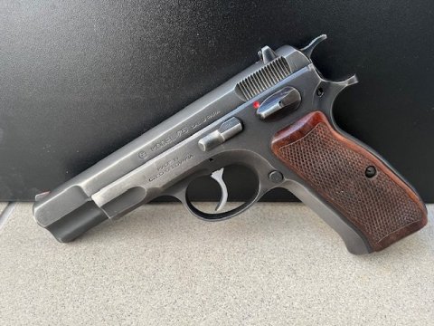Prodám pi. ČZ 75 9 Luger, r.v. 1991 v nevídaném provedení povrchové úpravy fosfátováním ( asi zbraň určená na vývoz ), povrchovka jako u pi. ČZ vz.52. Pistole je v zcela původním stavu, nenapadená kutilem, původní dřevěné střenky, dle stavu povrchu nošená, avšak s ohledem na vůle a absolutně čistý vývrt, asi ne moc střílená. K pistoli jsou dva zásobníky. K nákupu nutný ZP + NP, osobní převzetí v Praze. S vážným zájemcem jsem ochotný o ceně jedna