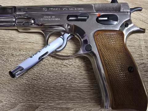Nabízím ze své sbírky legendární CZ75 PARA z roku 1992 (tedy jedna z posledních MADE IN CZECHOSLOVAKIA) v raritním stainless provedení s dřevěnými střenkami. Zbraně je ve velice dobré kondici, opravdu velmi málo střílená. Ke zbrani jsou dva zásbníky na 16 ran a kožené pouzdro K.M. Saddlery. Prodávám jako celek.