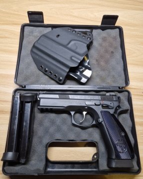 Prodám CZ 75 SP-01 SHADOW ve skvělém stavu s ocelovými temně modrými až černými střenkami - Má nastříleno cca 2000ks továrním střelivem. Ke zbrani přidávám tři zásobníky, kufřík a kydexové pouzdro (na opasek vnější) - viz foto. Odběr v Praze. Nákupní povoleni a ZO samozřejmostí.