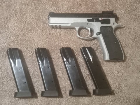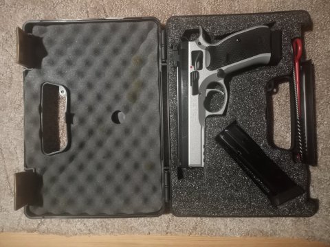 Prodám samonabíjecí pistoli CZ 75 SP-01 Shadow v ráži 9 mm Luger. Součástí jsou 4 zásobníky, původní kufřík, čištění, zakázkový hliníkový kufřík a taktický opasek se 4 nylonovými pouzdry na zásobníky. Vystříleno cca 10 000 nábojů. Upravena přímo v CZUB, zakázkové vyladění vůlí, mikrometrické hledí Target SW, světlovodná muška s červeným vláknem 1 mm, hranatý SA kohout, duralová SA spoušť. Zakoupena v r. 2016, původní cena 31 000,- Kč. K nákupu je nutný zbrojní průkaz a nákupní povolení.