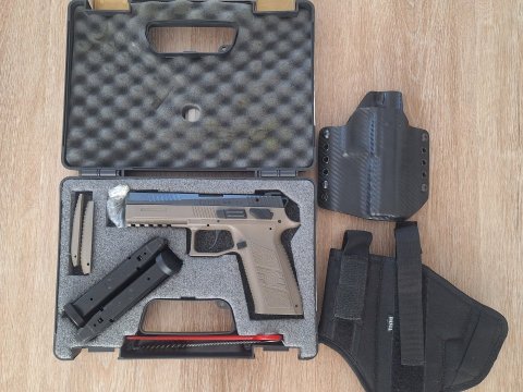 Prodám samonabíjecí pistoli CZ P-09 v pískové barvě. Nástřel cca 2 000 ran.Kupovaná v 2015,posledních 5 let nevyužitá v trezoru,pravidelně čištěná,bez závad,nošená minimálně.Tritiová mířidla,2x zásobník (19 ran), kompletní výměnné hřbety (S,M,L),díly pro montáž pojistky/vypouštěče. V ceně: Kydexové pouzdro,látkové pouzdro Dasta,originální kufřík a základní sada na čištění. Při rychlém jednání sleva. K předání ve Valašském Meziříčí a Vsetíně. ZP a nákupní povolení samozřejmostí.
