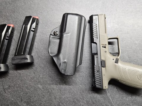 Prodám CZ P10C. Tělo v barvě FDE, cerakote povrchová úprava, tritiová mířidla, oboustranné vypouštění zásobníku. Ke zbrani 2 zásobníky, vnitřní kydex pouzdro, origo kufr a příslušenství. 1. majitel, kupováno v CZUB. Nástřel 2500-3000, pouze tovární střelivo, po každé střelbě čištěna, k vidění v Úvalech u Prahy.