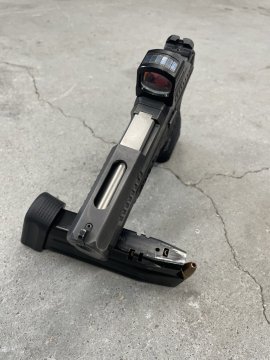 Prodám P10C s namontovaným Holosun 407C Zbraň je nošená a má nalítáno něco kolem 4000nb. Ke zbrani přidám sedm zásobníků na 17nb a náhradní sestavu zápalníku. Zbraň je připravena na portování hlavně. Důvod prodeje - koupil jsem si hammer fired a sedí mi to víc.