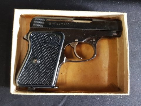 Samonabíjecí pistole CZ vz.45, 6,35mm Browning - klasické provedení. Příslušenstvím je originální krabička a jeden původní…