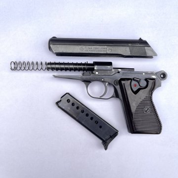 Prodám ČZ vzor 50 Strakonice. Mnou vlastněná cca půl roku, za tu dobu jsem s ní nastřílel do 500 ran. Zkusil jsem, posílám dál. Funkční, ale už má něco za sebou. K pistoli je jeden zásobník. Přidám k ní vnější pouzdro, čištění a náhradní střenky. Má nový zápalník. K předání 15km od Brna. ZP+NP podmínkou