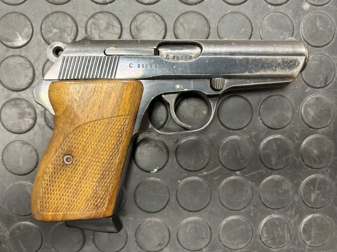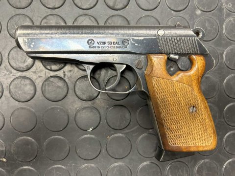 Samonabíjecí pistole CZ50 v ráži 7,65mm. Zbraň má zkušební značku z roku 1968. Ke zbrani jsou celkem dva zásobníky.