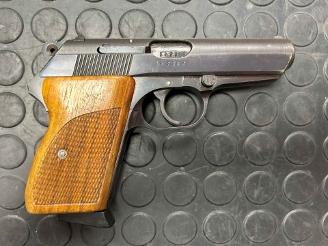 Samonabíjecí pistole CZ70 v ráži 7,65mm. Zbraň má zkušební značku z roku 1979. Ke zbrani jsou celkem dva zásobníky.