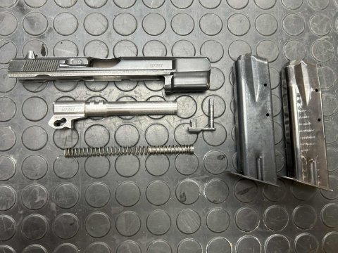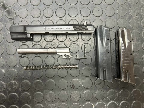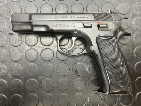 Pistole samonabíjecí výrobce Česká zbrojovka, model 85 v ráži 9 mm Luger. Nástřel zbraně do 200 ran. Ke zbrani jsou celkem dva zásobníky a vytěrák. Zbraň je v původním stavu. Zbraň kategorie R3.