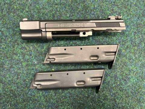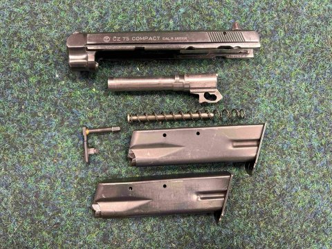 Pistole samonabíjecí výrobce Česká zbrojovka, model 75 kompakt, ráže 9 mm Luger, brynýrovaná verze, původní stav. K pistoli je výměnný adapter 22LR. příslušenství ke zbrani je 2x zásobník 9 mm Luger, 2x zásobník 22LR k adapteru, 2x původní přepravní kufříky, drobné součástky (pružiny, kohout, podavače, 2x nylonové pouzdro na zásobníky. Zbraň i adapter jsou v perfektním technickém stavu. jedná se o zbraně kategorie B.