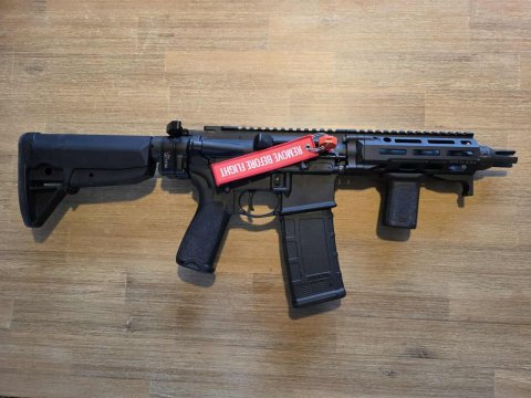 Zbraň má oproti originálu: ----Sklopný adaptér LAW TACTICAL LLC AR-15/M16 GEN3-M FOLDING -----Natahovací páka 5.56 RADIAN WEAPONS AR-15 RAPTOR-SD AMBIDEXTROUS -----Spoušť Hiperfire EDT SHARP SHOOTER -----Přední rukojeť, pistolovka i pažba BCM -----TLUMIČ VÝŠLEHU BORELOCK HIPER SHORT 7.62