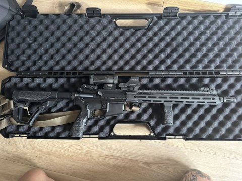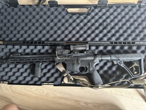 DDM4 V7 v odlehčené verzi SLW se 14,5" hlavní (v záruce). Vystřeleno přesně 200 ran. Kupovaná leden/25. Pravidelně čištěna, 100% top stav. Prodám nejlépe jako komplet i s kolimátorem Holosun HS510C (9.981Kč) a zvět. modulem Holosun HMX3 (6.990Kč). Případně jednotlivě. Přidám zdarma záložní mířidla magpul mbus(4.000Kč) vertikální ručku DD a origo kufík DD. Původní cena kompletu 79.156Kč Cena kompletu 60.000Kč. Pouze puška 49.000Kč ZP+NP Rychlé jednání sleva