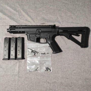 Prodám AR 9, FMP 9 od firmy FM Products. Ráže 9mm luger, hlaveň je dlouhá 5", se závitem 1/2"-36. Ve zbrani je PCC trigger spoušť od firmy timney trigger s odporem spouště 1,1–1,4 kg. V ceně jsou 3 zásobníky PMAG od Magpull o kapacitě 21 nábojů a náhradní díly. Je z ní vystřeleno okolo 600 nábojů, důvod prodeje je nevyužití