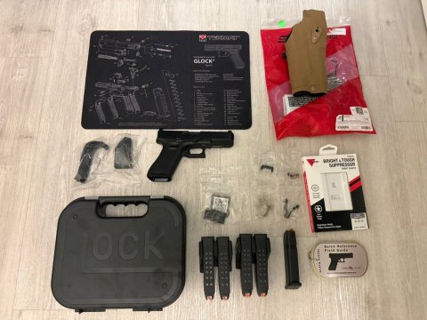 Prodám lehce střílený Glock 17 Gen5 FS MOS s celkem 5ks zásobníků + mířidla Trijicon Bright & Tough + Pouzdro Safariland + odlechčená stojna spouště 4lb, zvětšený záchyt závěru, prodloužený vypouštěč zásobníku, podložka Tekmat, Real Avid průvodce čištěním, atd... . Pistole má nastříleno 300 ran a byla zakoupena 04/25. Důvod prodeje je přechod na jinou kompaktnější pistoli. Původní cena pistole a veškerého příslušenství byla cca 38300kč. Já pistoli a veškeré příslušeství prodávám za 26000kč.