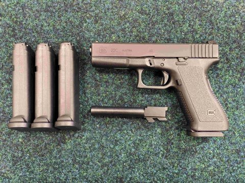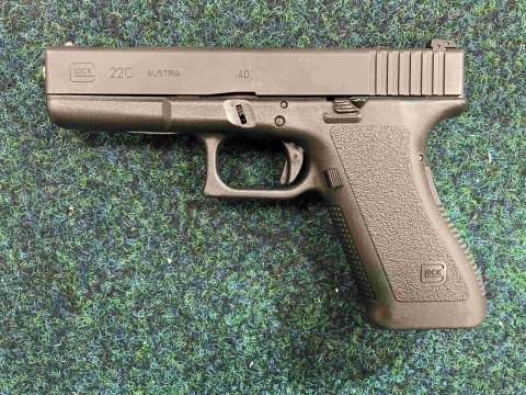 Pistole Glock 22C, ráže 40 SW, gen. 2, sportovní záchyt závěru, 4 x zásobník s botkami pearce grip, náhradní hlaveň bez kompenzačních otvorů, náhradní záchyt závěru a standartní vypouštění zásobníku. Nastavitelné hledí. Zbraň ve výborném stavu s nástřelem do 100 ran. Zbraň kategorie R3.
