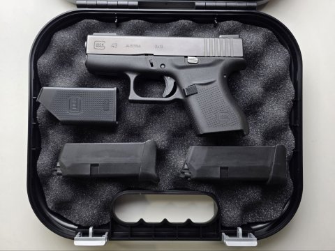 Prodám Glock 43. Zbraň je v perfektním stavu. 500 ran. Důvod prodeje: velikost, potřebuji Glock 19. Možnost vyzkoušet na střelnici.