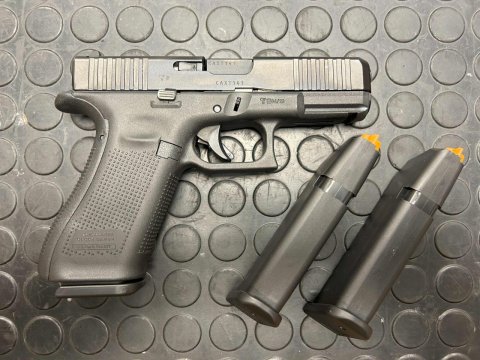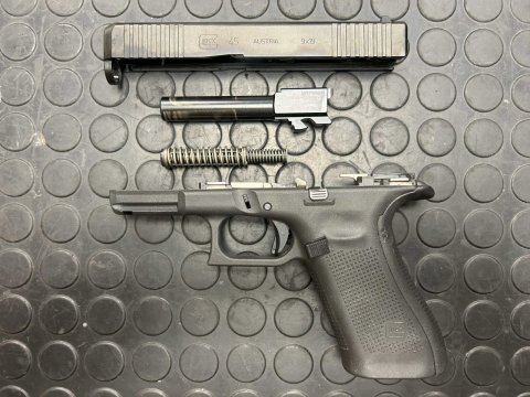 Pistole samonabíjecí výrobce Glock, model 45 ráže 9 mm Luger. Ke zbrani jsou tři zásobníky, originální přepravní kufr, příslušenství – přídavné hřbety rukojeti, čištění na zbraň, původní stojna spouště, ve zbrani je namontována stojna s odporem 2 kg. Zbraň je ve výborném technickém stavu, pravidelně udržována s nástřelem cca 3000 ran, pouze s továrním střelivem S&B.