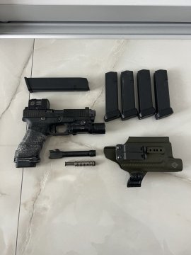 Prodám pistoli glock 45 se zvětšeným vypouštěčem zásobníku, spoust standart company, kolimator acro p-2 ( jeste v zaruce 8 let) Hlaveň radian ramjet + radian pružina. Ke zbrani samozrejme origo nova hlaveň + origo pružina origo mířidla. Zvýšená mířidla ameriglo Veškeré krabice, učteny dodám ke zbrani. .