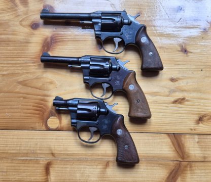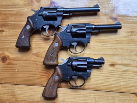 Prodám kolekci 3 kusů revolverů GRAND. 2 palec 1968 .38 Special, .4 palec 1967 38 Special a .6 palec 1969 22 l.r. Pouze majitelům NP + ZP. Cena za všechny 3 kusy dohromady.