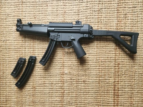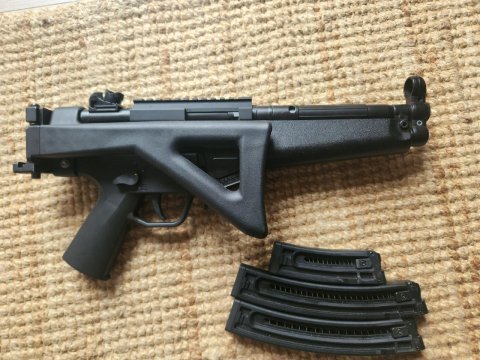 Vymena nebo prodej MP5 od nemecke firmy GSG. Dobry stav, plne funkcni, mnou nastrileno par set ran SB club. Rail ma optiku, 3 zasobniky, dva 20 a jeden 10 ran. Sklopna pazba. Mozna vymena za jinou zbran raze 9mm. Nebo strelivo, nebo prodej.