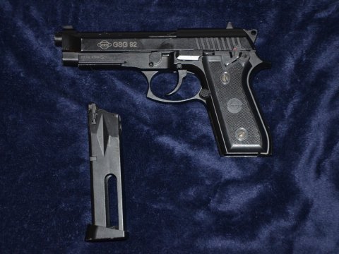Viceranna vzduchova pistole CO2 na ocelove broky. Replika Beretta 92FS s veskerou funkcnosti a rozborkou. Mirne opotrebeni. Plne funkcni.